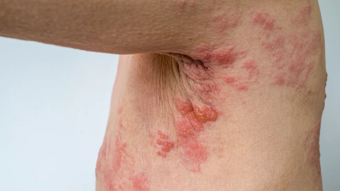Shingles is a viral infection that causes painful rashes on the skin. The primary symptom of shingles is a painful rash that usually appears as a single stripe of blisters on one side of the body. The rash can be accompanied by pain, itching, sensitivity to touch, red rash that develops into clusters of blisters, tingling, or burning sensations.