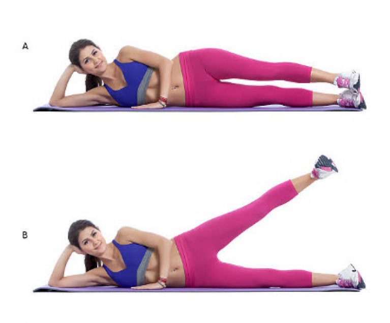 To do this exercise you lie on the left side. At this time, your right leg is over the left leg. Also during this time, you should bend your left hand and place the palm on the head and the other hand should be on the floor. Now raise your right leg as much as possible, and hold it for a while. But do not bend your knees at this time. Then bring the foot back down. You should do three sets of 15-15 each side.